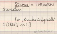 Sterax TUROWSKI Stanisław Kronika Zakopiańska 1 (1926), nr 1.