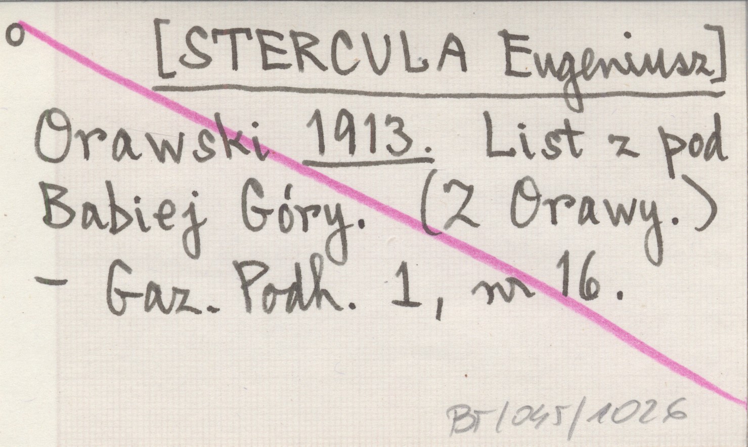 Orawski [STERCULA Eugeniusz] 1913 List z pod Babiej Góry. (Z Orawy).