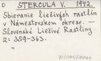 STERCULA V. 1942 Sbieranie liečivých rastlín v Námestovskom okrese.