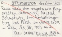STERNBERG Joachim 1808 Reise nach den ungrischen Bergstädten Schemnitz, Neusohl, Schmölnitz, dem Karpathengebirg und Pesth im Jahre 1807.