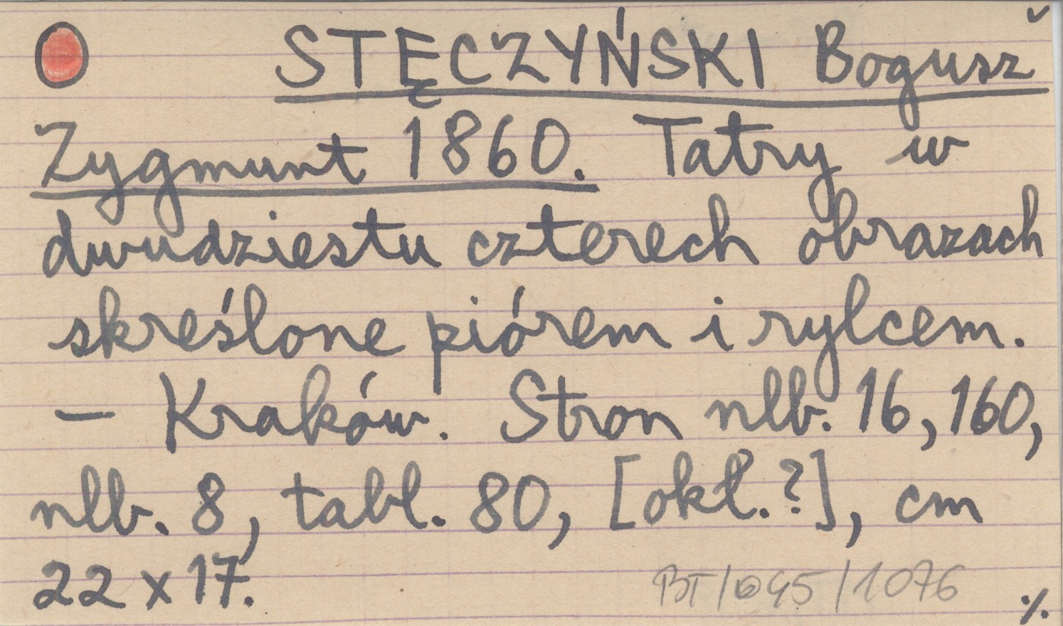 STĘCZYŃSKI Bogusz Zygmunt 1860 Tatry w dwudziestu czterech obrazach skreślone piórem i rylcem.