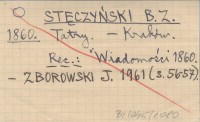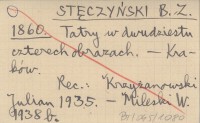 Kraków , REC: Czytelnia dla Młodzieży (Lwów) 1 (1860), nr 9: 76 ; KRZYŻANOWSKI Julian 1935 ; MILESKI W. 1938 b ; GOTKIEWICZ M. 1948 a ; Biblioteka Warszawska (Warszawa) 1860, t. 4 (nowej ser. 12): 648-650, 672-673 ; SIEMIEŃSKI Ł. 1860... ; BANACH J. 1975 ; ZBOROWSKI J. 1961: 56-57 ; Wiadomości 1860 ;