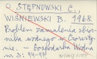 STĘPNOWSKI C. WIŚNIEWSKI, B. ; 1968 Problem zamulenia zbiornika wodnego w Czorsztynie.