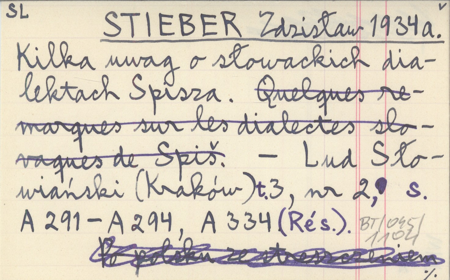STIEBER Zdzisław 1934 a Kilka uwag o słowackich dialektach Spisza.