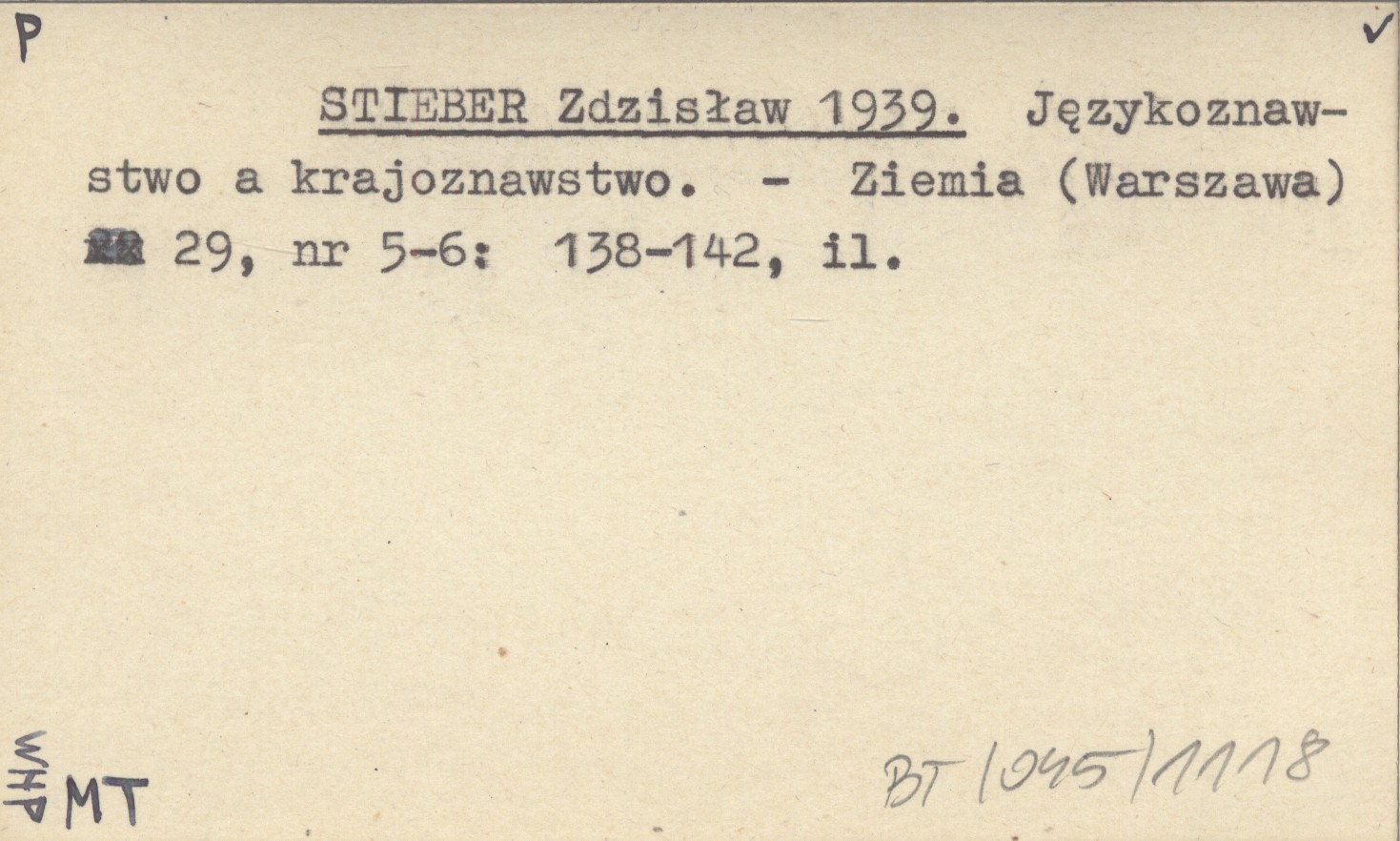 STIEBER Zdzisław 1939 Językoznawstwo a krajoznawstwo.