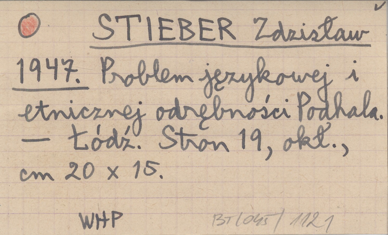 STIEBER Zdzisław 1947 Problem językowej i etnicznej odrębności Podhala.