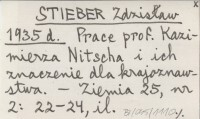 STIEBER Zdzisław 1935 d Prace prof. Kazimierza Nitscha i ich znaczenie dla krajoznawstwa.