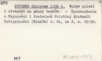 STIEBER Zdzisław 1936 Prace językoznawcze, dotyczące Karpat w ostatnich dwóch latach.
