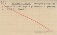 STIEBER Z. 1937 Fonetyka polskiego dialektu kulturalnego w porównaniu z gwarową.