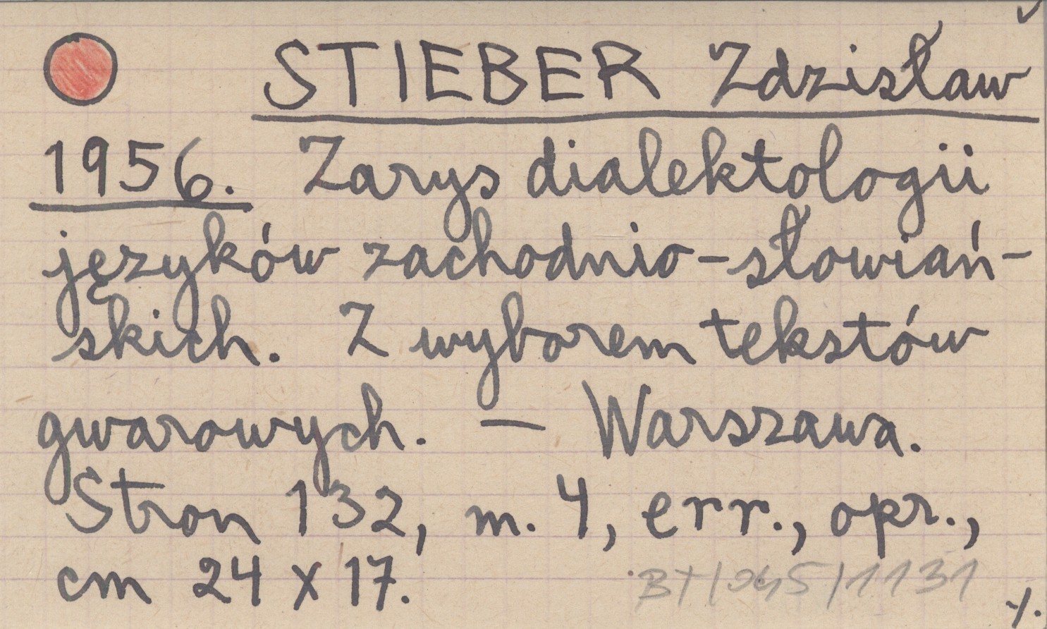 STIEBER Zdzisław 1956 Zarys dialektologii języków zachodnio-słowiańskich. Z wyborem tekstów gwarowych.