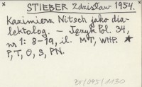 STIEBER Zdzisław 1954 Kazimierz Nitsch jako dialektolog.