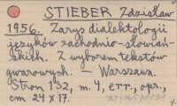 STIEBER Zdzisław 1956 Zarys dialektologii języków zachodnio-słowiańskich. Z wyborem tekstów gwarowych.