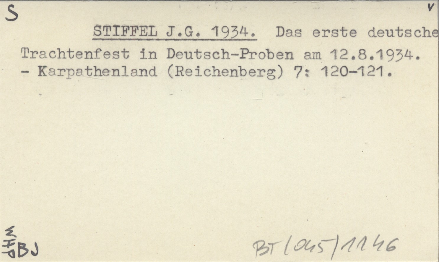 STIFFEL J. G. 1934 Das erste deutsche Trachtenfest in Deutsch-Proben am 12.8.1934.