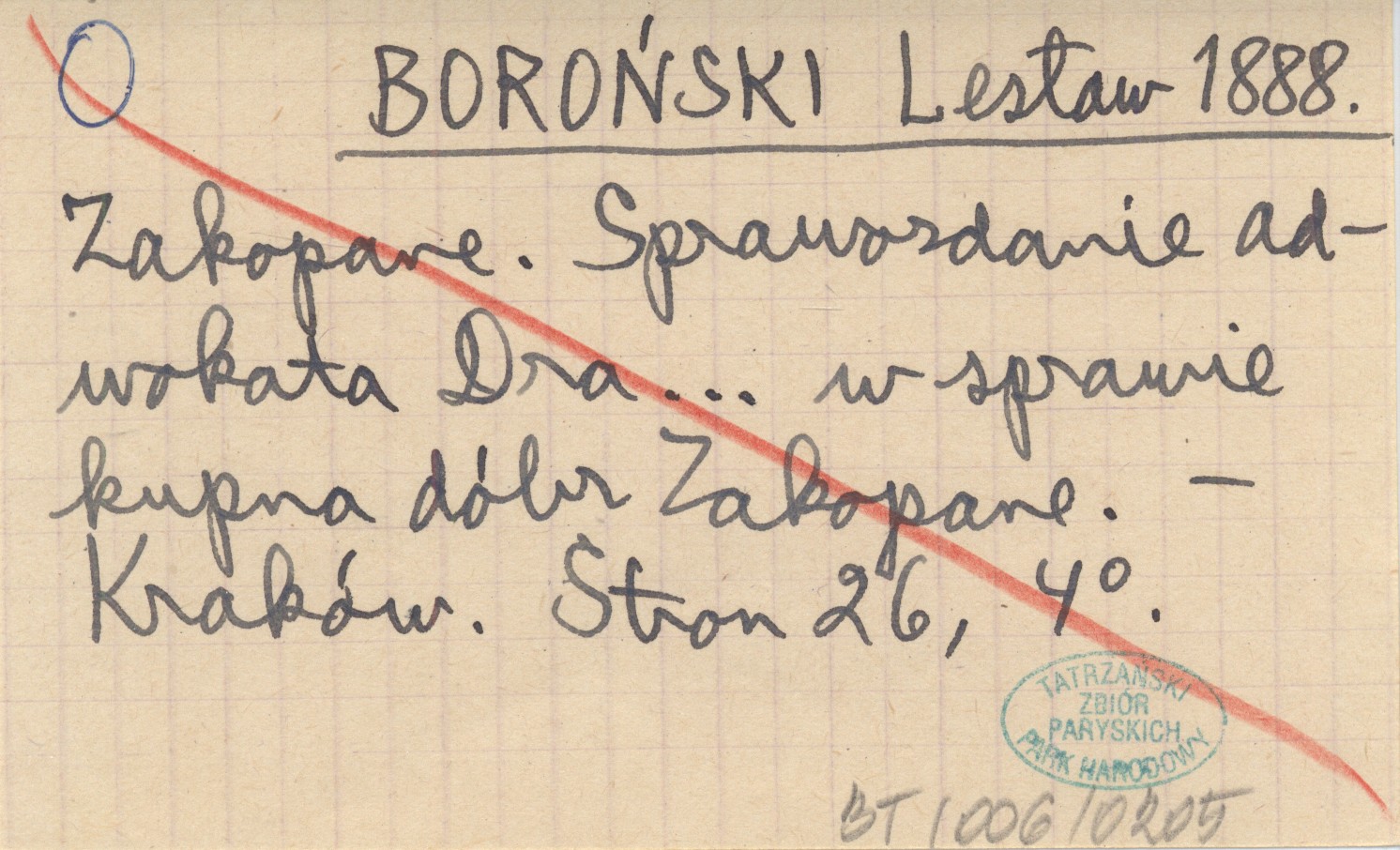 BOROŃSKI Lesław 1888 Zakopane. Sprawozdanie adwokata Dra ... w sprawie kupna dóbr Zakopane.