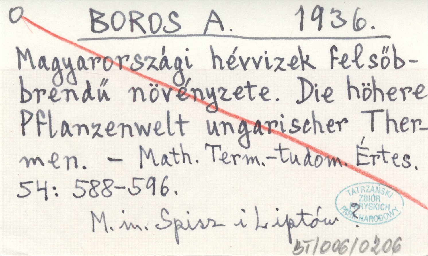 BOROS A. 1936 Magyarországi hévvizek felsőbbrendü növényzete. Die höhere Pflanzenwelt ungarischer Thermen.
