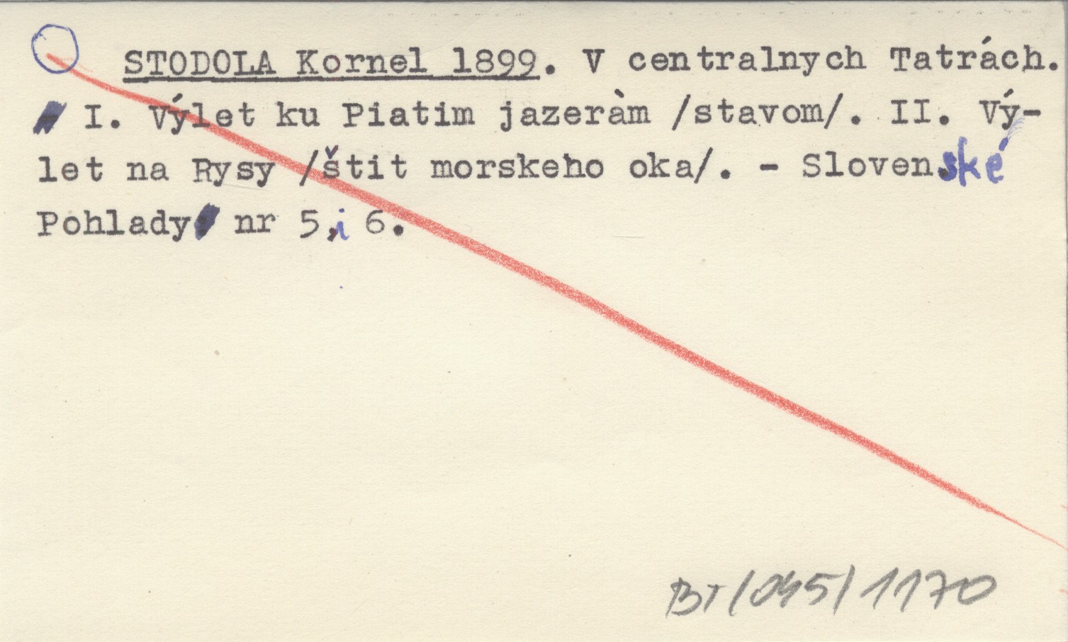 STODOLA Kornel 1899 V centralnych Tatrách. I. Výlet ku Piatim jazerám (stavom). II. Výlet na Rysy (štit morskeho oka).