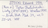 STOCKI Edward 1971 [Rec. o:] Tytus Chałubiński: Listy (1840-1889). Wrocław 1970.