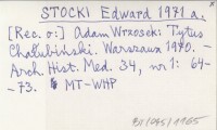 STOCKI Edward 1971 a [Rec. o:] Adam Wrzosek: Tytus Chałubiński. Warszawa 1970.