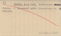 STODOLA Ivan 1947 Rajónovanie Tatier.