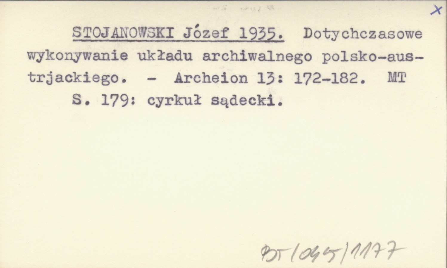STOJANOWSKI Józef 1935 Dotychczasowe wykonywanie układu archiwalnego polsko-austrjackiego.
