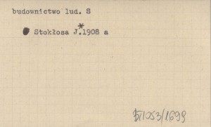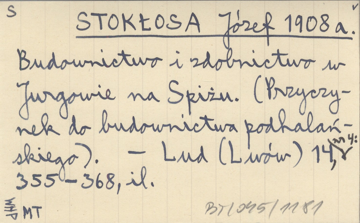 STOKŁOSA Józef 1908 a Budownictwo i zdobnictwo w Jurgowie na Spiżu. (Przyczynek do budownictwa podhalańskiego).