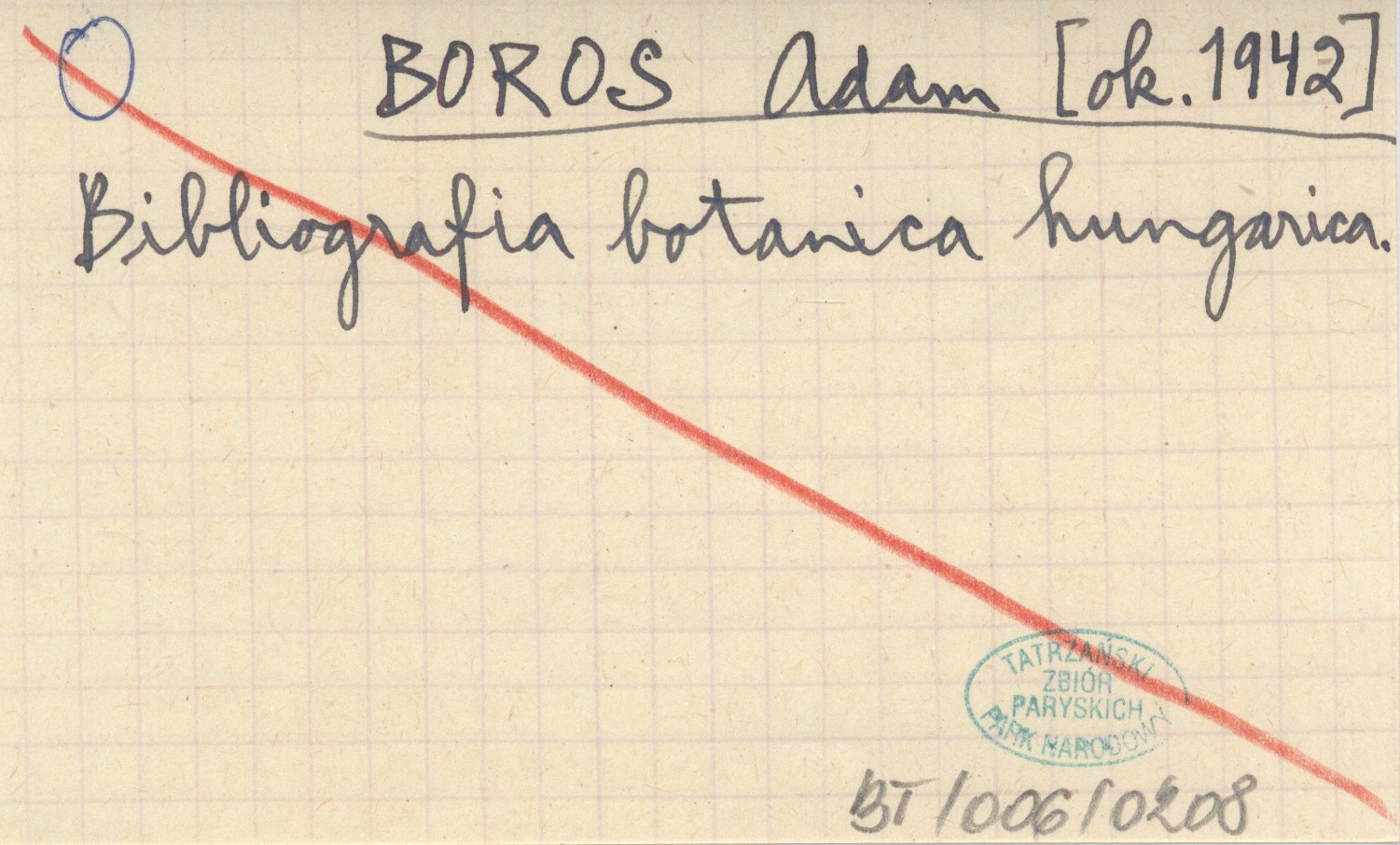 BOROS Adam [ok. 1942] Bibliografia botanica hungarica.