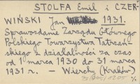 STOLFA Emil CZERWIŃSKI, Jan. ; 1931 Sprawozdanie Zarządu Głównego Polskiego Towarzystwa Tatrzańskiego z działalności za czas od 1 marca 1930 do 31 marca 1931 r.