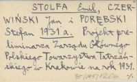 STOLFA Emil CZERWIŃSKI, Jan. ; PORĘBSKI, Stefan. ; 1931 a Projekt preliminarza Zarządu Głównego Polskiego Towarzystwa Tatrzańskiego w Krakowie na rok 1931.