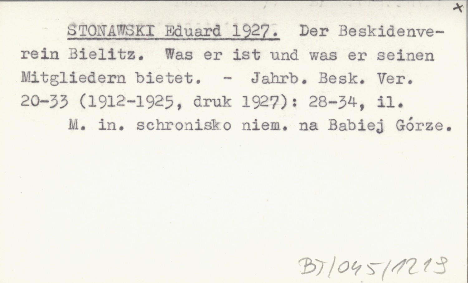 STONAWSKI Eduard 1927 Der Beskidenverein Bielitz. Was er ist und was er seinen Mitgliedern bietet.