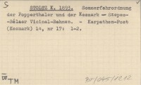 STOLTZ K. 1893 Sommerfahrordnung der Popperthaler und der Kesmark-Szepes-Bélaer Vicinal-Bahnen.