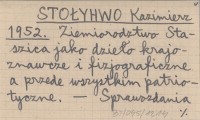 STOŁYHWO Kazimierz 1952 Ziemiorodztwo Staszica jako dzieło krajoznawcze i fizjograficzne a przede wszystkim patriotyczne.