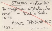STOMOW Wacław 1927 Na marginesie artykułu "Cui bono?"