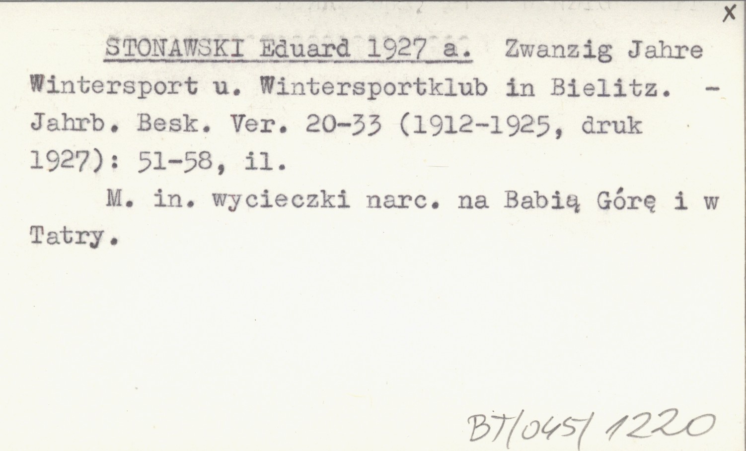 Jahrbuch des Beskidenvereines, 20-33 (1912-1925, druk 1927): 51-58, il. M. in. wycieczki narciarskie na Babią Górę i w Tatry.