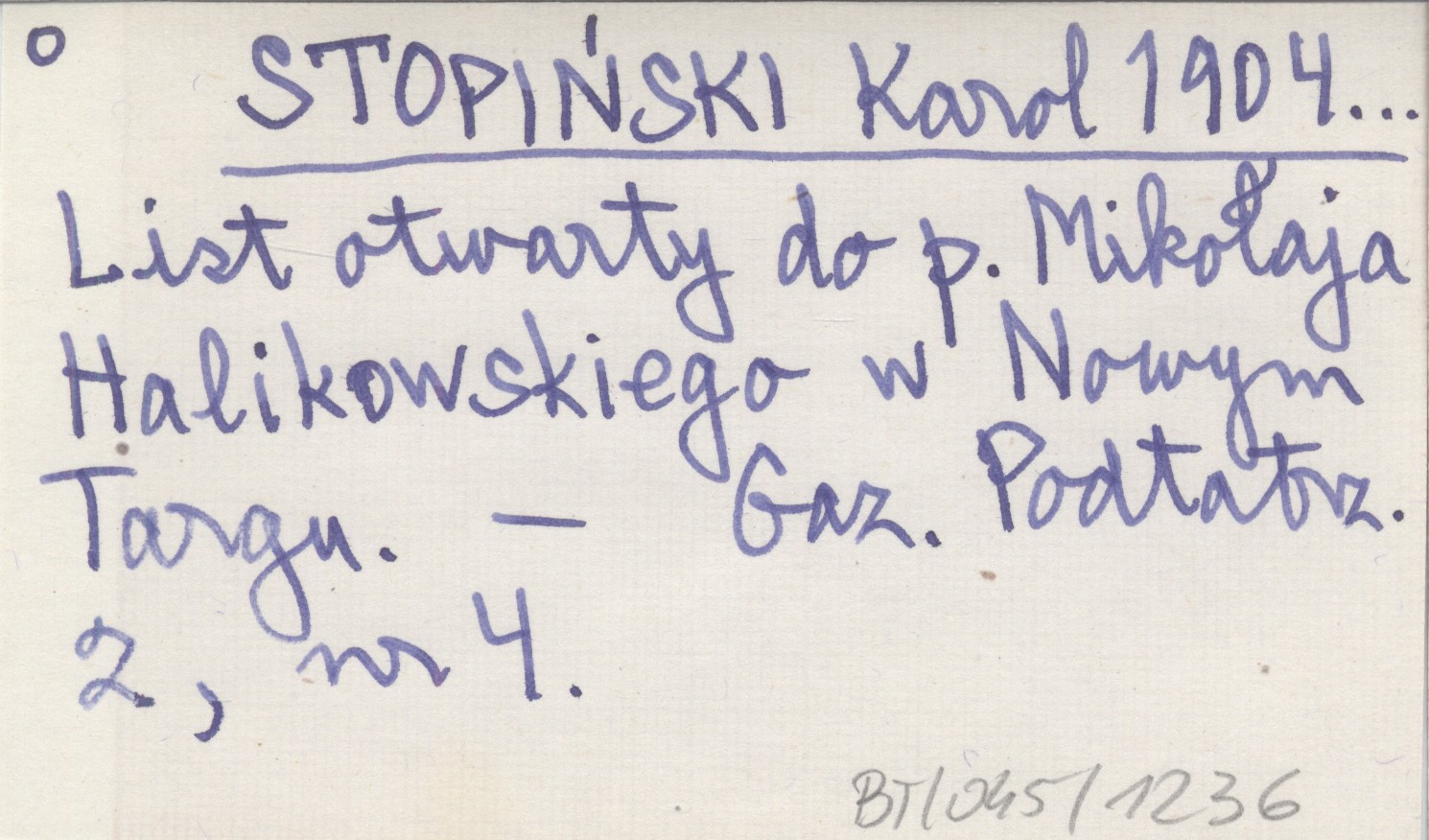 STOPIŃSKI Karol 1904... List otwarty do p. Mikołaja Halikowskiego w Nowym Targu.