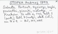 STOPKA Andrzej 1897 Sabała. Portret, życiorys, bajki, powiastki, piosnki, melodye.