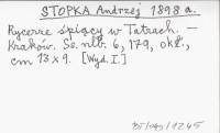 STOPKA Andrzej 1899 b Rycerze śpiący w Tatrach. Fantazye na tle podań ludowych. Drugi tysiąc.
