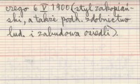 Lud, 6, nr 4: 414. Streszczenie referatu pod tytułem jw., wygłoszonego na posiedzeniu naukowym oddziału krakowskiego Towarzystwa Ludoznawczego 6 V 1900 (styl zakopiański, a także podhalańskie zdobnictwo ludowe i zabudowa osiedli).