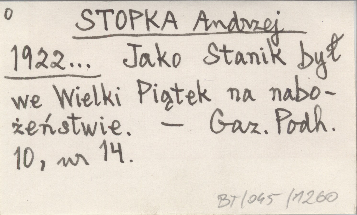 STOPKA Andrzej 1922... Jako Stanik był we Wielki Piątek na nabożeństwie.