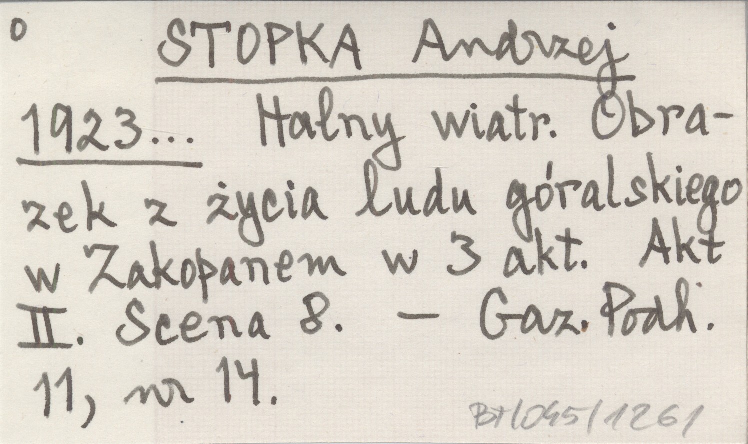 STOPKA Andrzej 1923... Halny wiatr. Obrazek z życia ludu góralskiego w Zakopanem w 3 akt. Akt II. Scena 8.