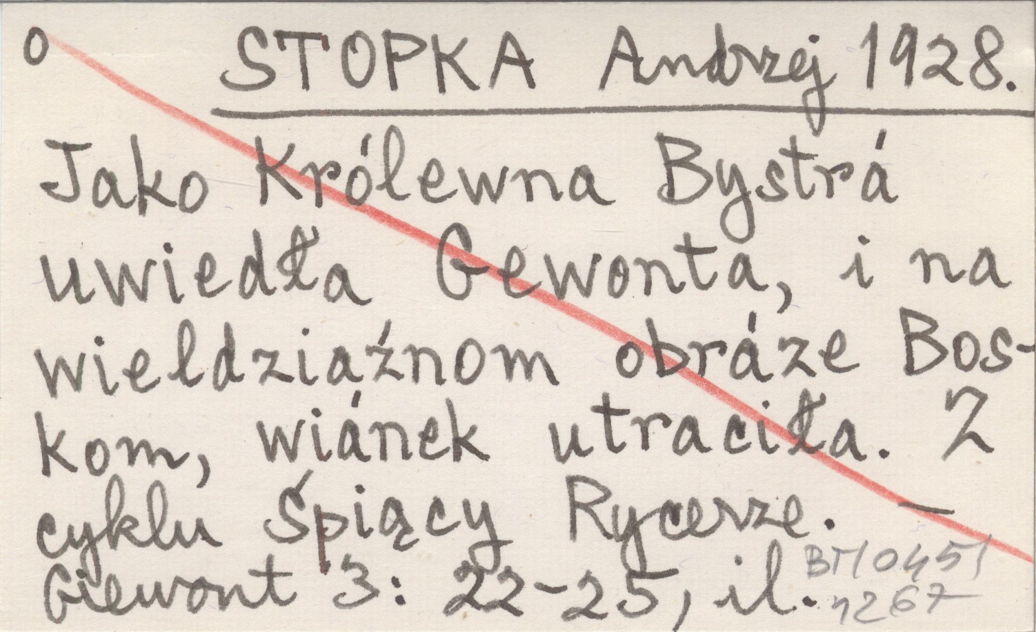STOPKA Andrzej 1928 Jako Królewna Bystrá uwiedła Gewonta, i na wieldziaźnom obráze Boskom, wiánek utraciła. Z cyklu śpiący Rycerze.