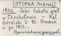 [STOPKA Andrzej] 1932 Jako Sabała grał w Chochołowie.