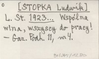 L. St. [STOPKA Ludwik] 1923... Wspólna wina, wszyscy do pracy!