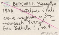 BOROWIEC Mieczysław 1936 Ustalenie i zalesienie usypiska w Sromowcach Niżnych.