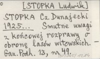 STOPKA Cz. Dunajecki [STOPKA Ludwik] 1925... Smutne uwagi z końcowej rozprawy o obronę lasów witowskich.