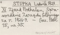 STOPKA Ludwik 1927... XI Zjazd Podhalan. Sprawozdanie Zarządu Głównego za r. 1926-7.