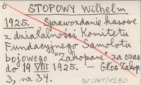 STOPOWY Wilhelm 1925 Sprawozdanie kasowe z działalności Komitetu Fundacyjnego Samolotu bojowego "Zakopane" za czas do 19 VIII 1925.
