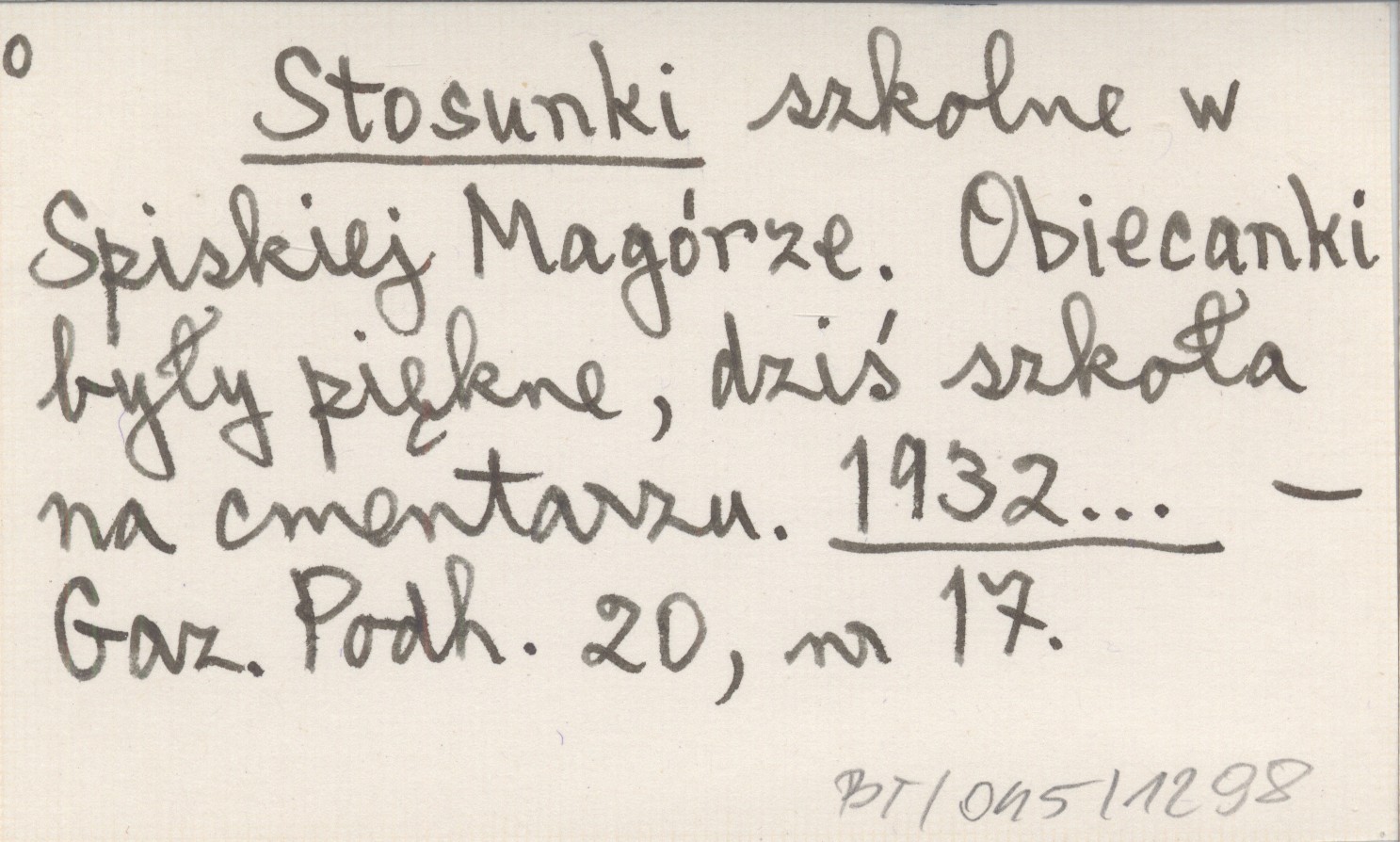 Stosunki szkolne w Spiskiej Magórze. Obiecanki były piękne, dziś szkoła na cmentarzu. 1932...
