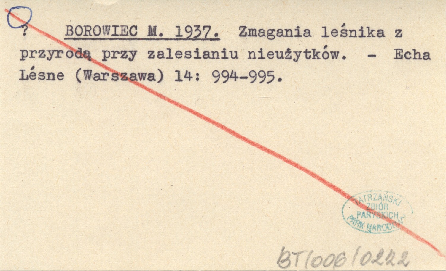 BOROWIEC M. 1937 Zmagania leśnika z przyrodą przy zalesianiu nieużytków.