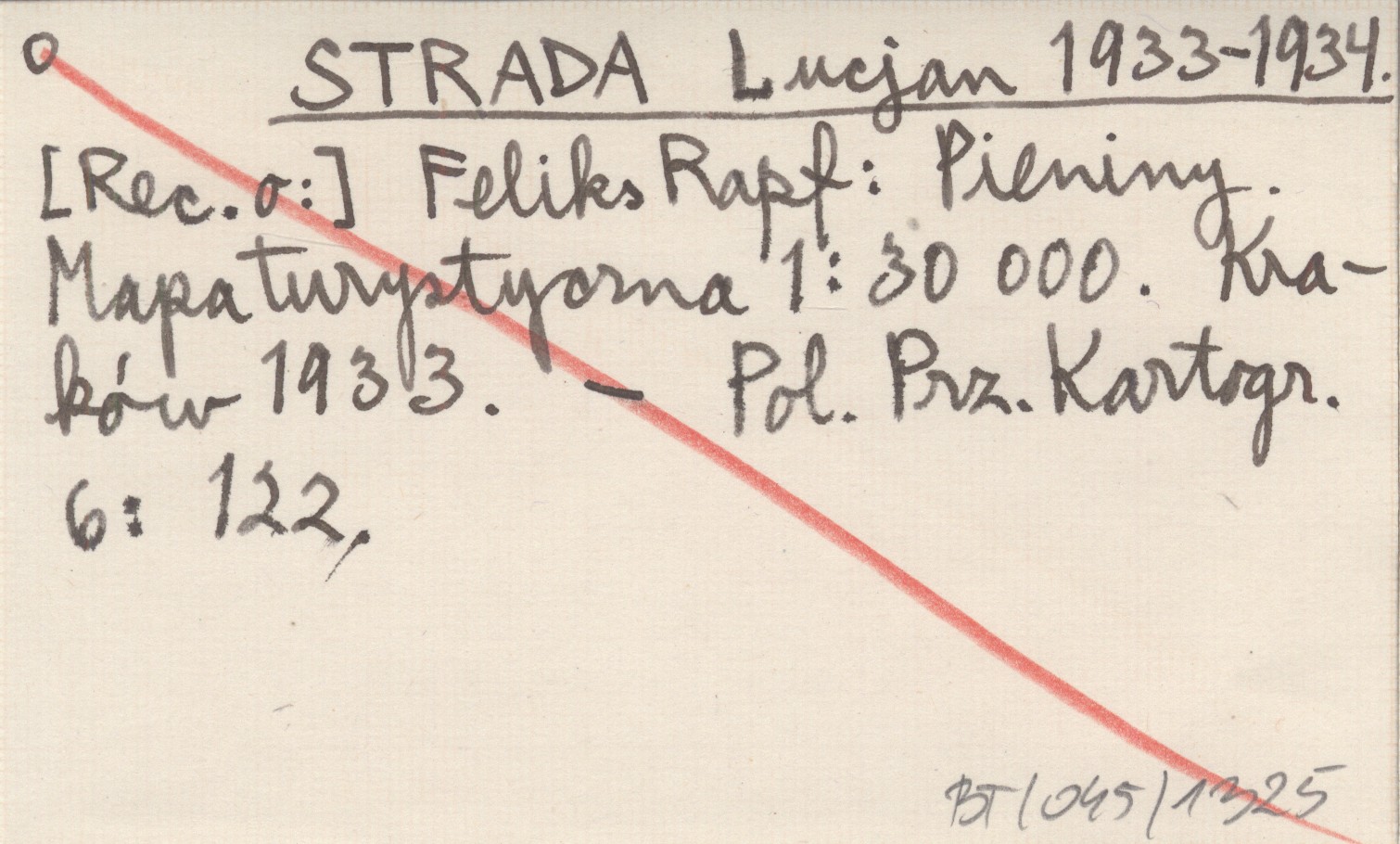 STRADA Lucjan 1933-1934 [Rec. o:] Feliks Rapf: Pieniny. Mapa turystyczna 1:30 000. Kraków 1933.