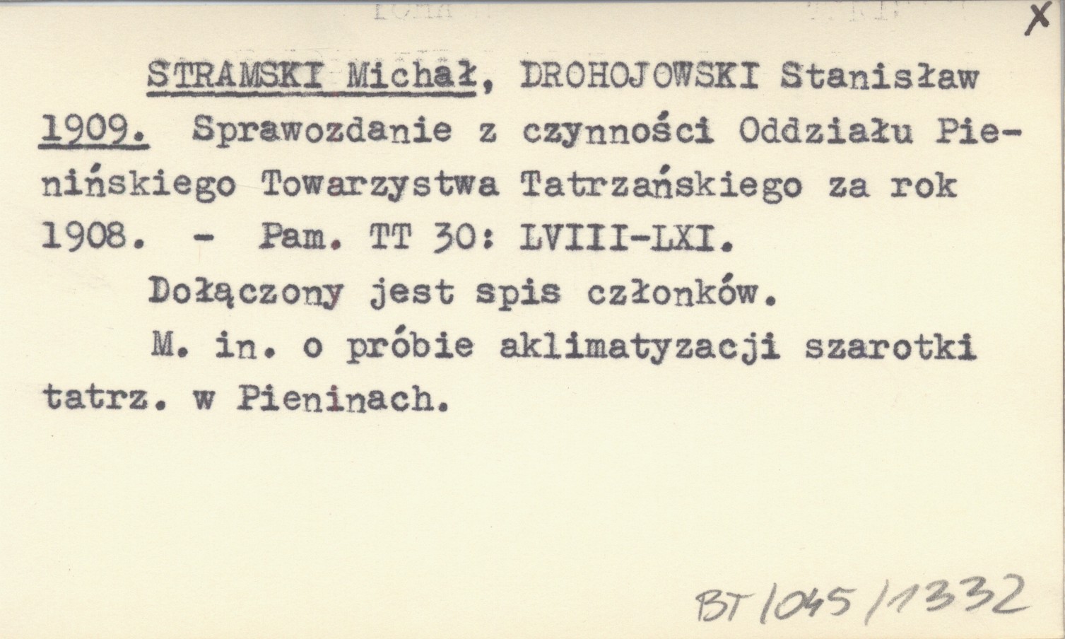 STRAMSKI Michał DROHOJOWSKI, Stanisław. ; 1909 Sprawozdanie z czynności Oddziału Pienińskiego Towarzystwa Tatrzańskiego za rok 1908.